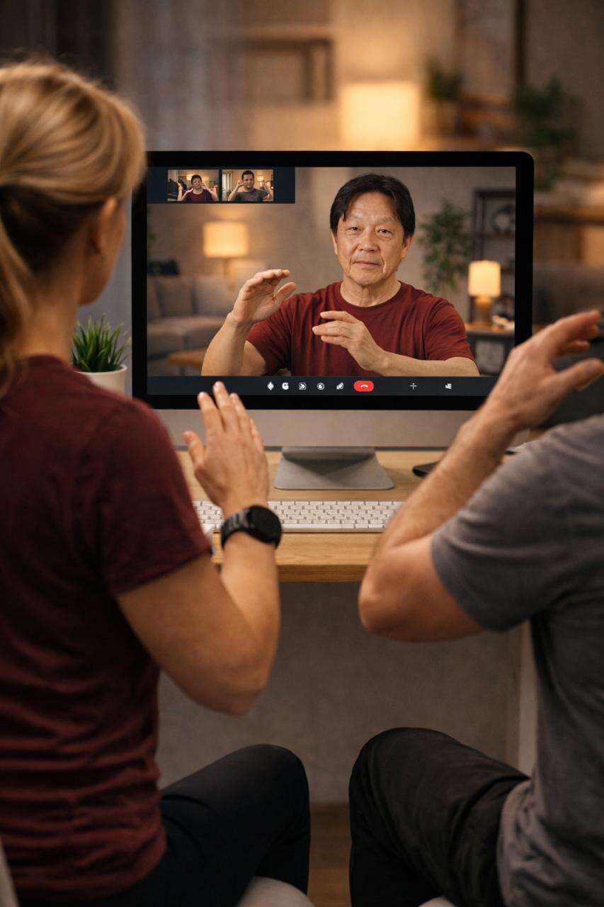 Práticas Chinesas no período noturno para promover alongamento, fortalecimento, respiração e circulação da energia vital, em um ambiente de acolhimento, cuidado e aprendizado contínuo.